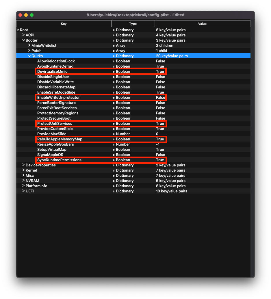 Liên quan đến các quirk về UEFI enviroment chúng ta sẽ thay đổi như sau