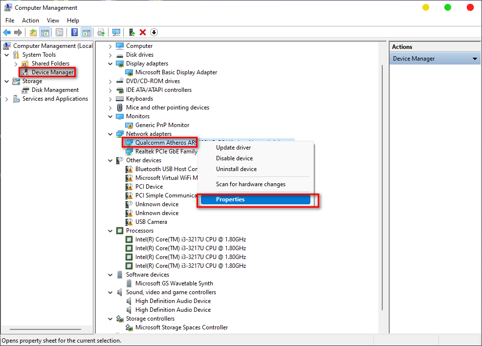 B2: Tiến hành chuột phải vào device cần lấy location path và chọn properties.