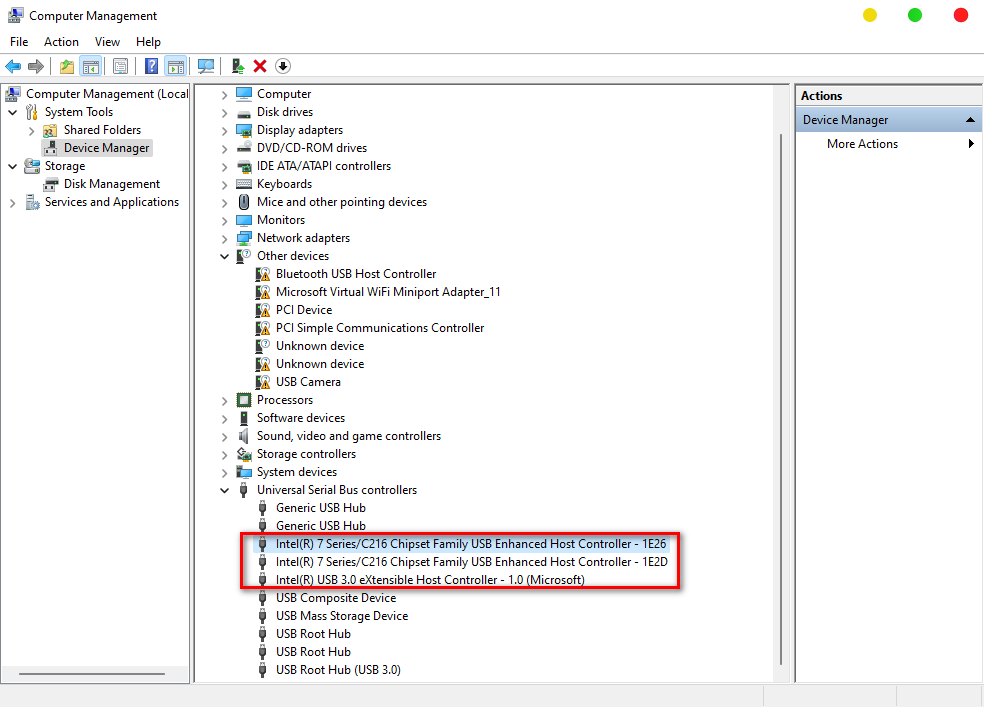 Tên usb controller thường bắt đầu bằng