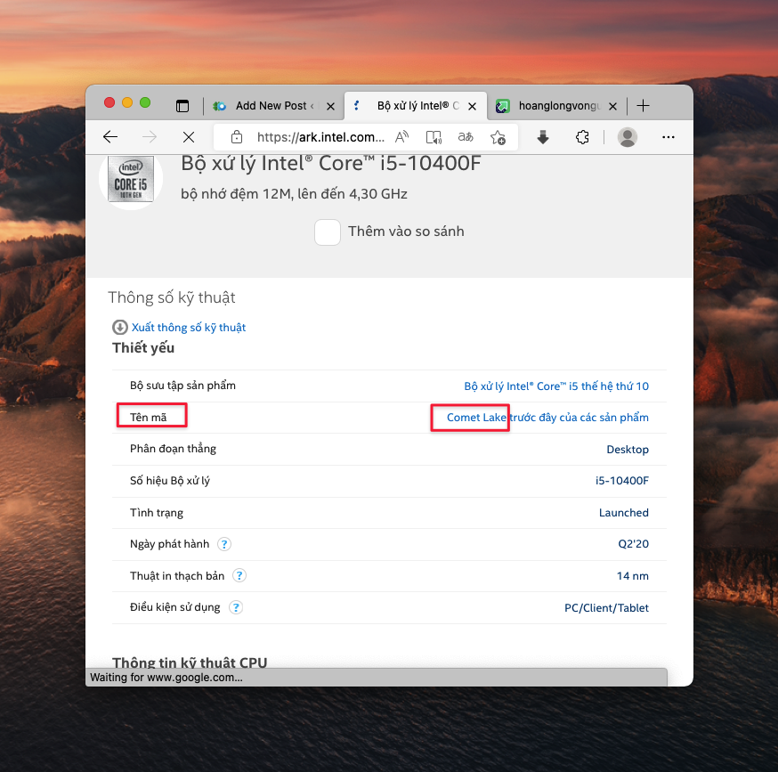 B5: Bạn sẽ chú ý vào phần tên mã hoặc code name. Đây chính là code name CPU của bạn.