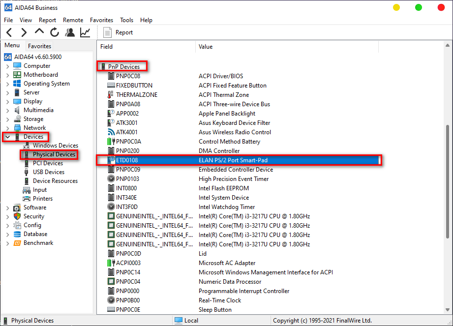 B2: Các bạn truy cập vào đường dẫn Devices --> Physical Devices --> PnP Devices ở đây các bạn sẽ tiến hành tìm kiếm name Touchpad.