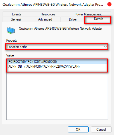 B3: Tới tab Details và chọn Hardware ID và nhìn vào dòng đầu tiên