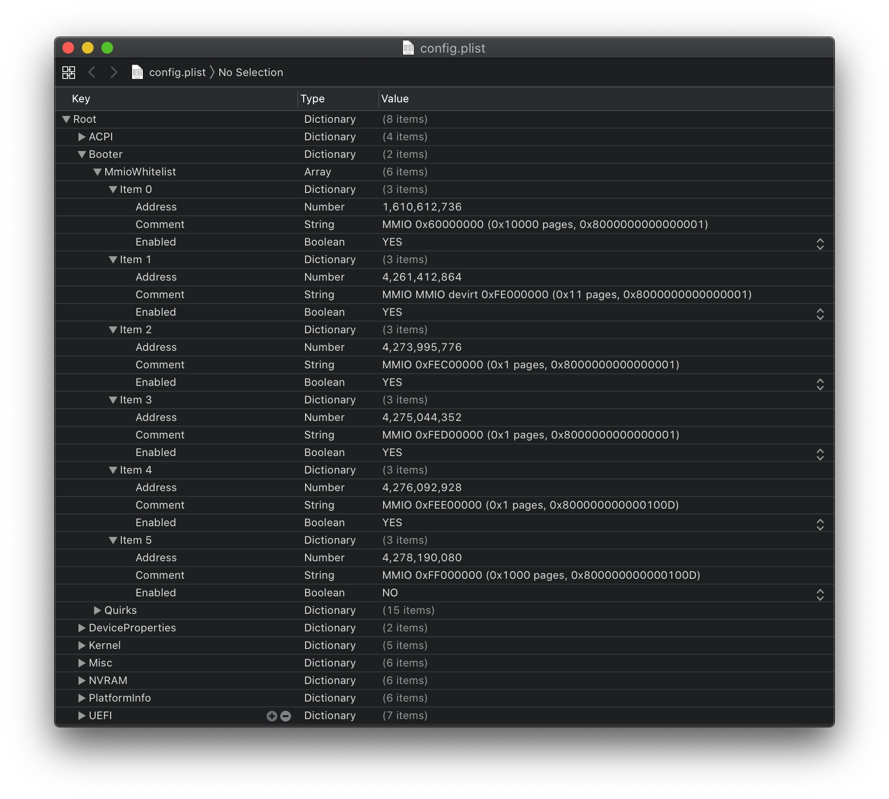 B3: Add vào config ==> booter ==> MmioWhitelist.