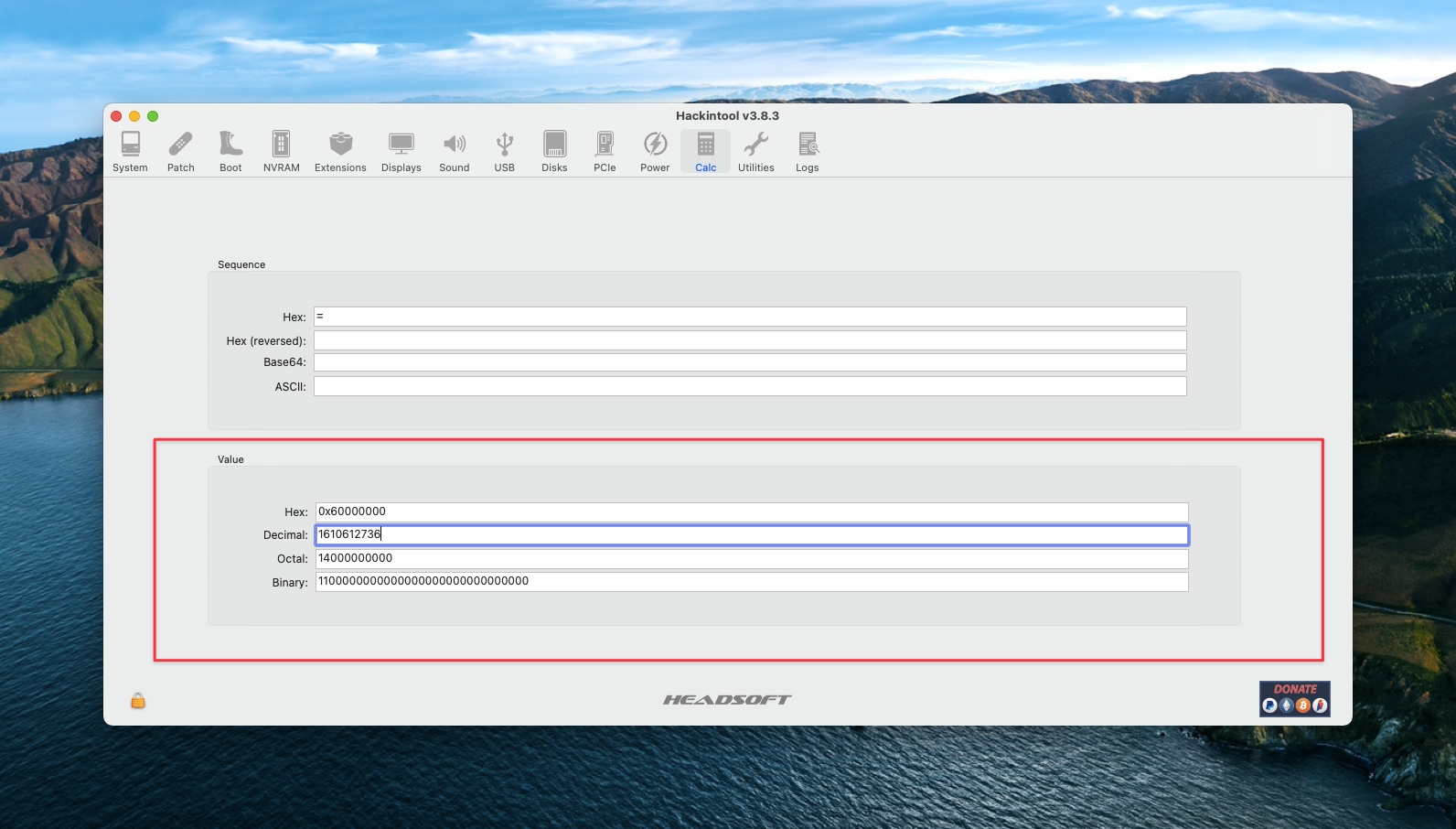 Ta cần convert hex to decimal (có thể dùng Hackintool).