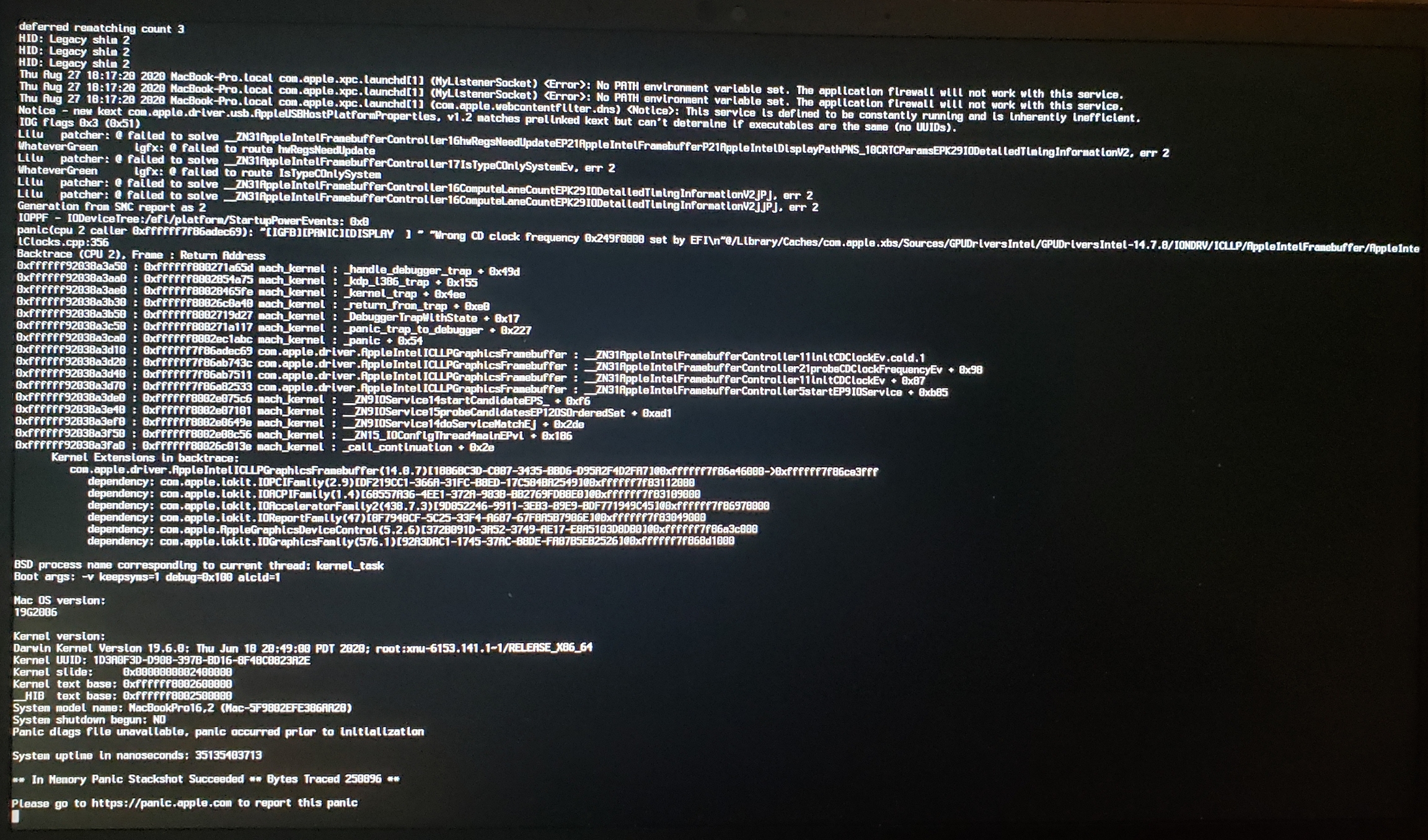 AppleIntelI210EthernetKernel panic on “Wrong CD Clock Frequency” with Icelake laptop