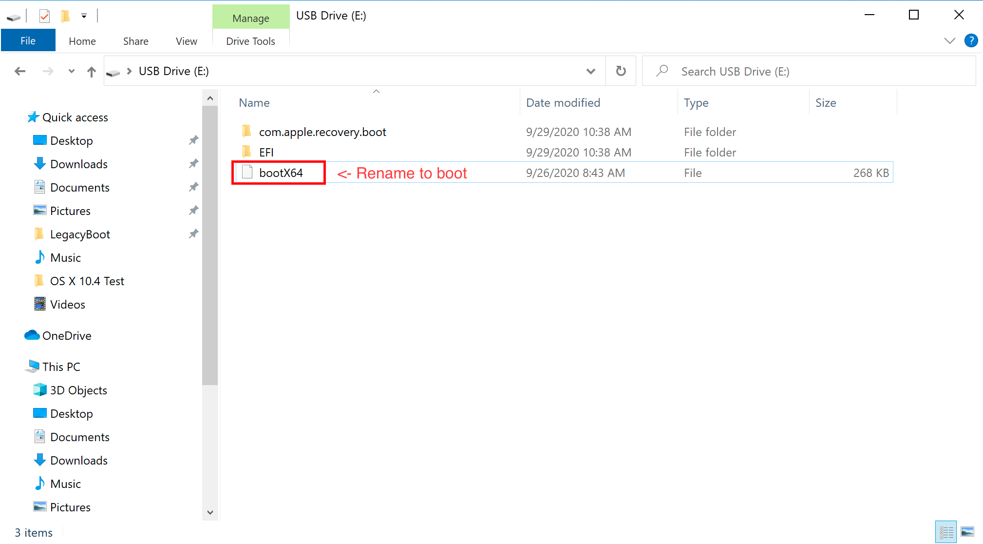 B4: Mở USB ra rồi copy file bootx64 và bootia32 từ Utilities/LegacyBoot/ và đổi tên chúng lại thành boot